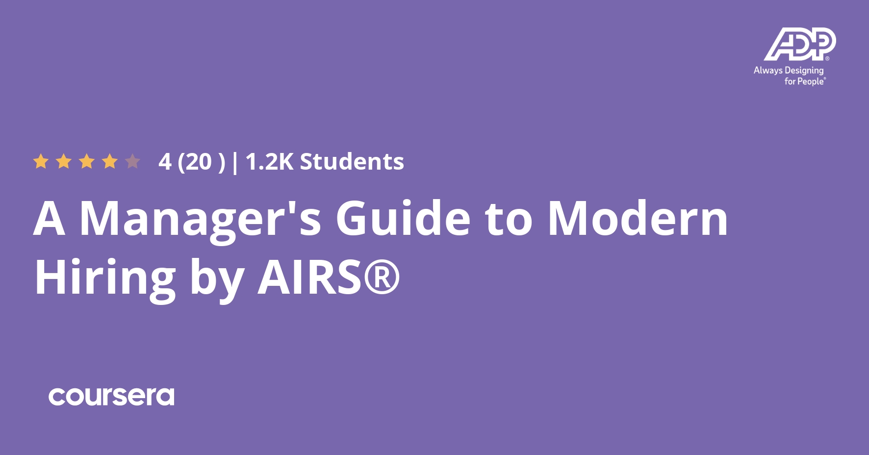 Offered by Automatic Data Processing, Inc. (ADP). Develop and grow your hiring manager expertise!. For current or prospective managers … Enroll for free.