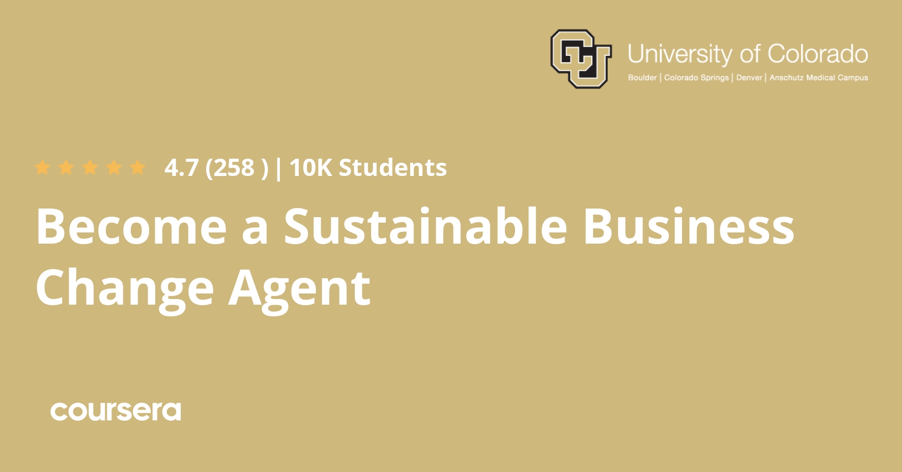 Offered by University of Colorado System. Make your company and the world a better place. Learn tools and strategies to make sustainability … Enroll for free.