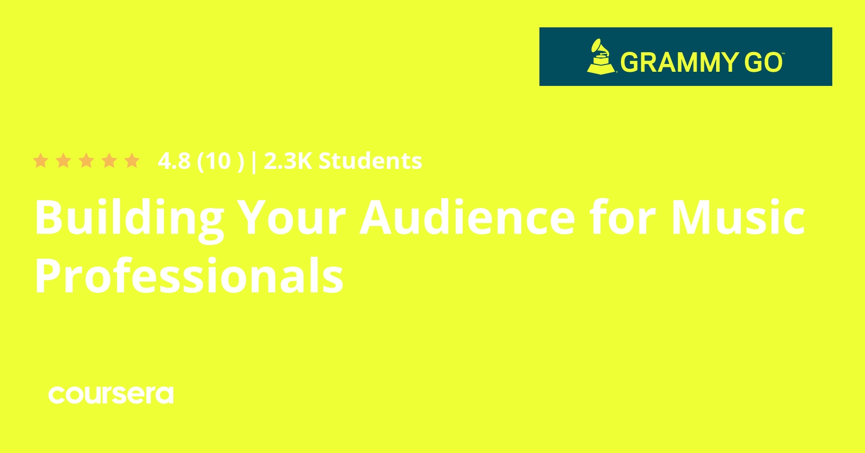 Offered by GRAMMY GO. Develop your brand and engage your audience. Learn strategies to grow your career from GRAMMY winners and nominees, … Enroll for free.