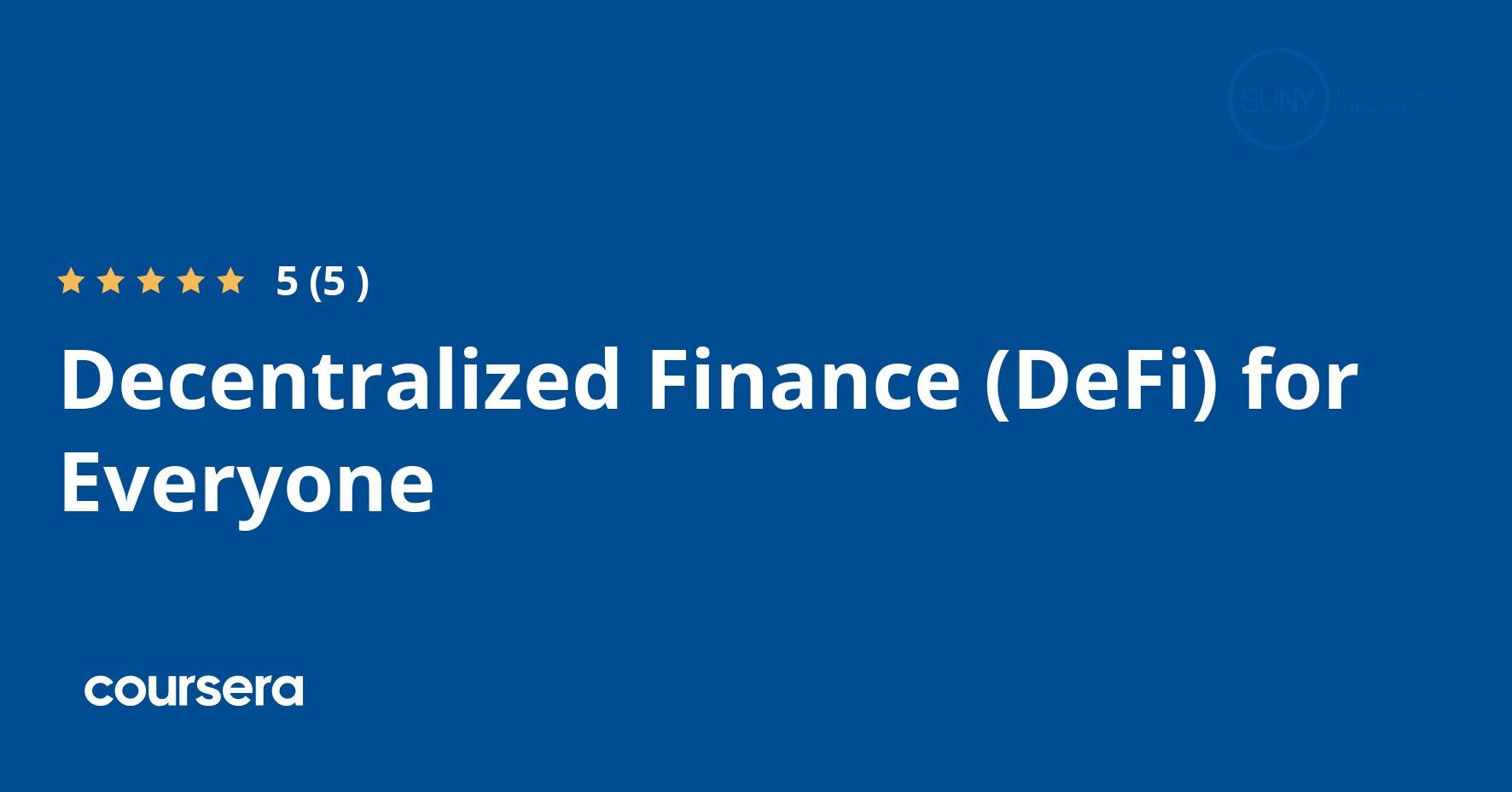 Offered by The State University of New York. Journey into Decentralized Finance (DeFi). Become a participant in an evolving cryptocurrency … Enroll for free.