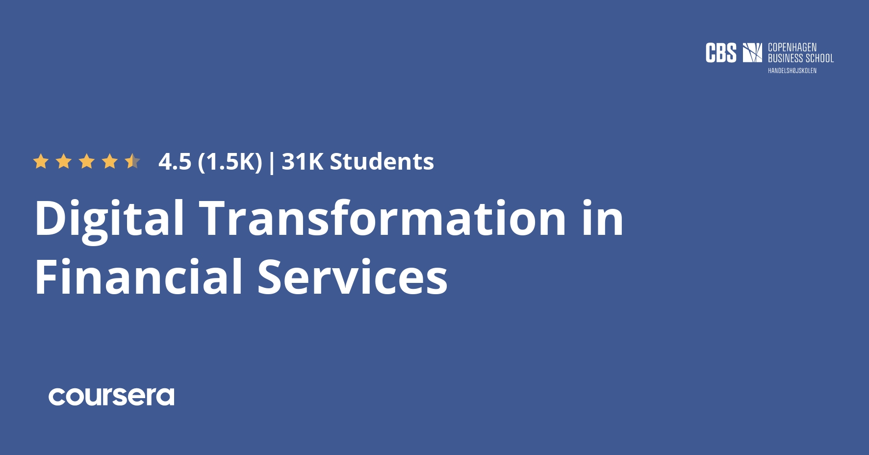 Offered by Copenhagen Business School. Master the digital transformation of finance. Understand and leverage the digital dynamics to compete … Enroll for free.