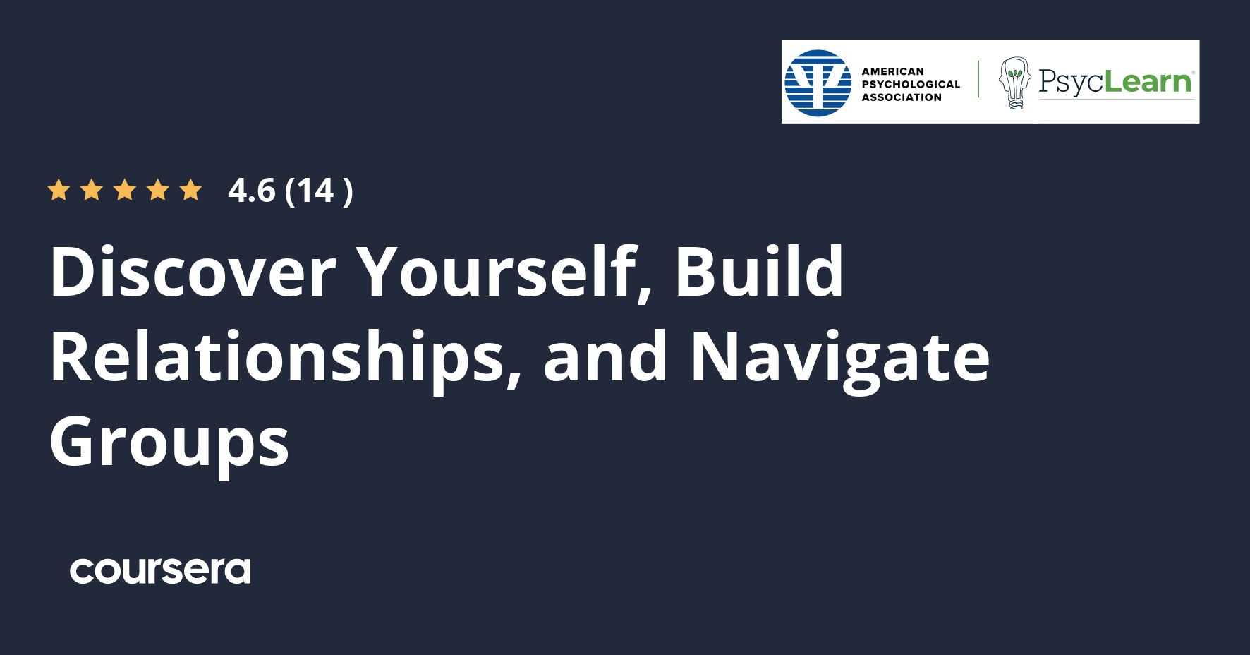 Offered by American Psychological Association. Learn about Yourself and How to Work with Others. Learning about topics like self-esteem and … Enroll for free.