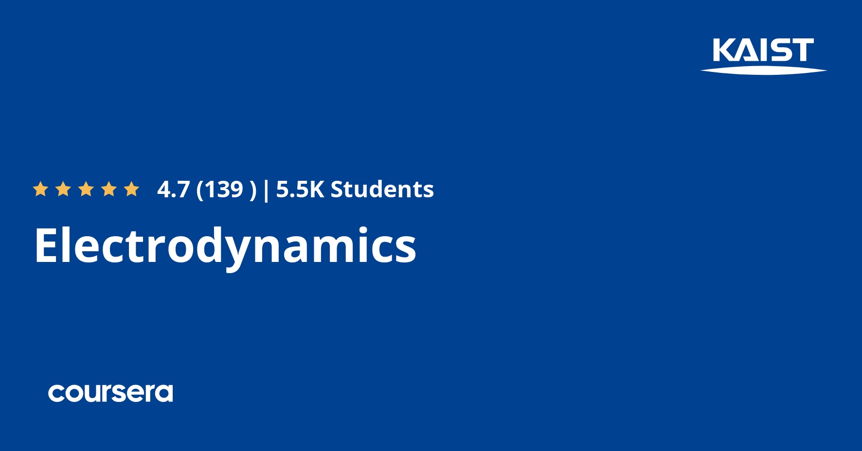 Offered by Korea Advanced Institute of Science and Technology(KAIST). Launch Your Career in Electrodynamics. The goal of Electrodynamics is … Enroll for free.