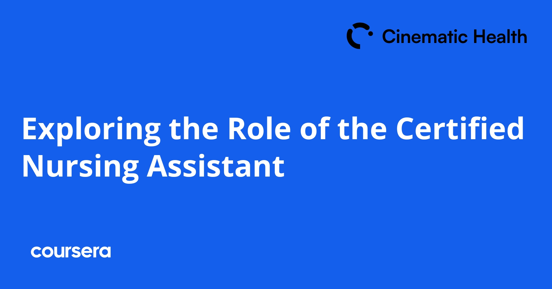 Offered by Cinematic Health. Learn About the Certified Nursing Assistant Role. Discover the essentials needed to start your caregiving career. Enroll for free.