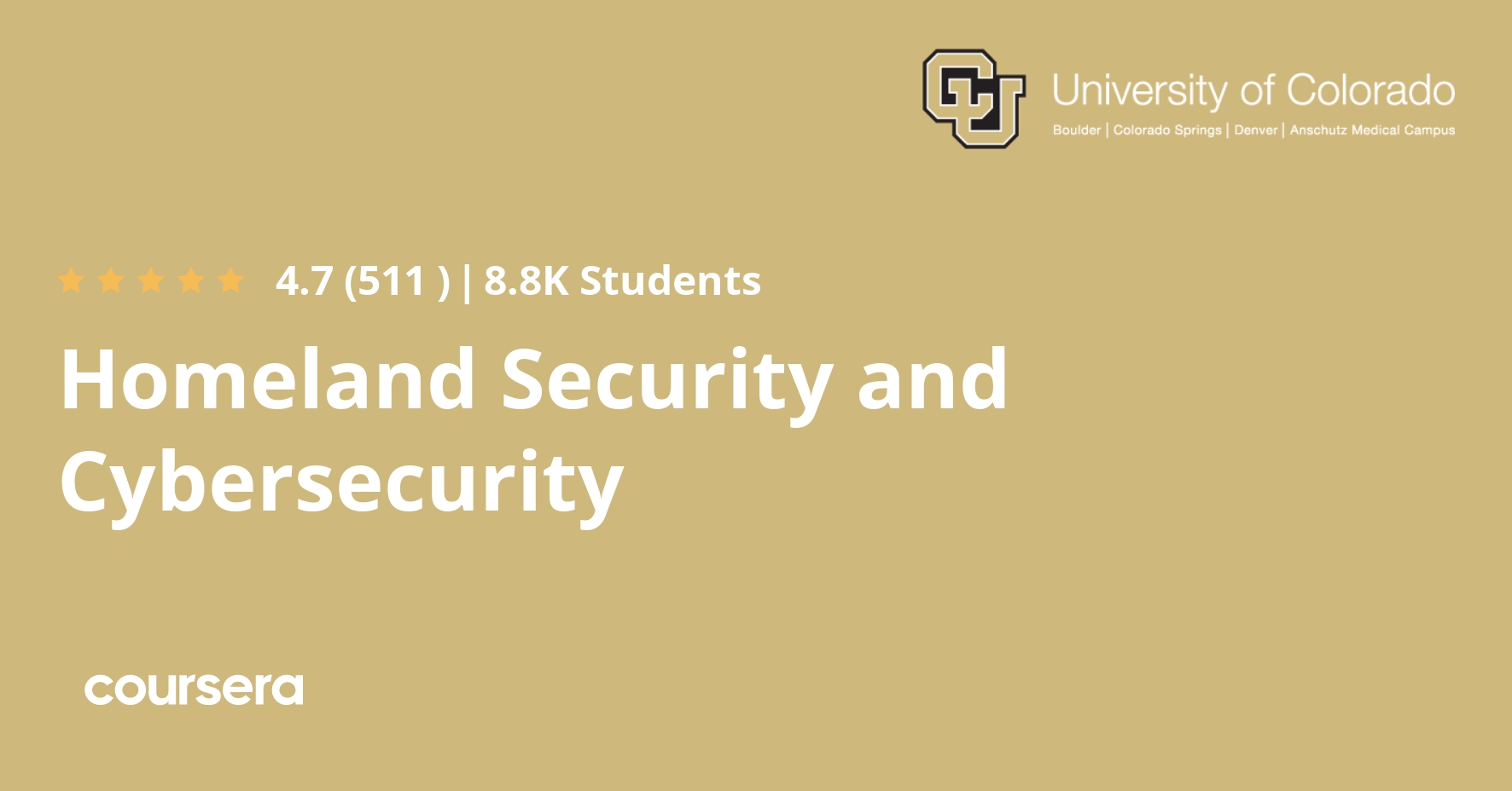 Offered by University of Colorado System. Homeland Security and Cybersecurity. Safeguarding the United States from domestic catastrophic … Enroll for free.