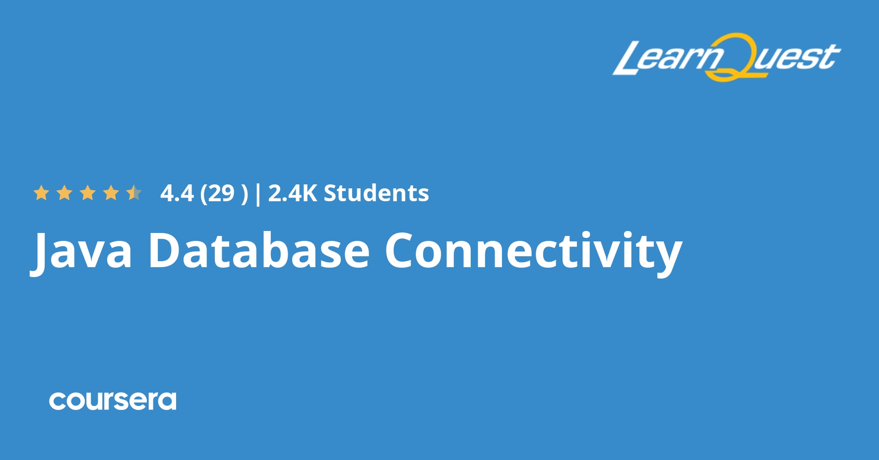 Offered by LearnQuest. Java Database Connectivity. After this course you should not only be able to demonstrate the mechanics of JDBC but … Enroll for free.