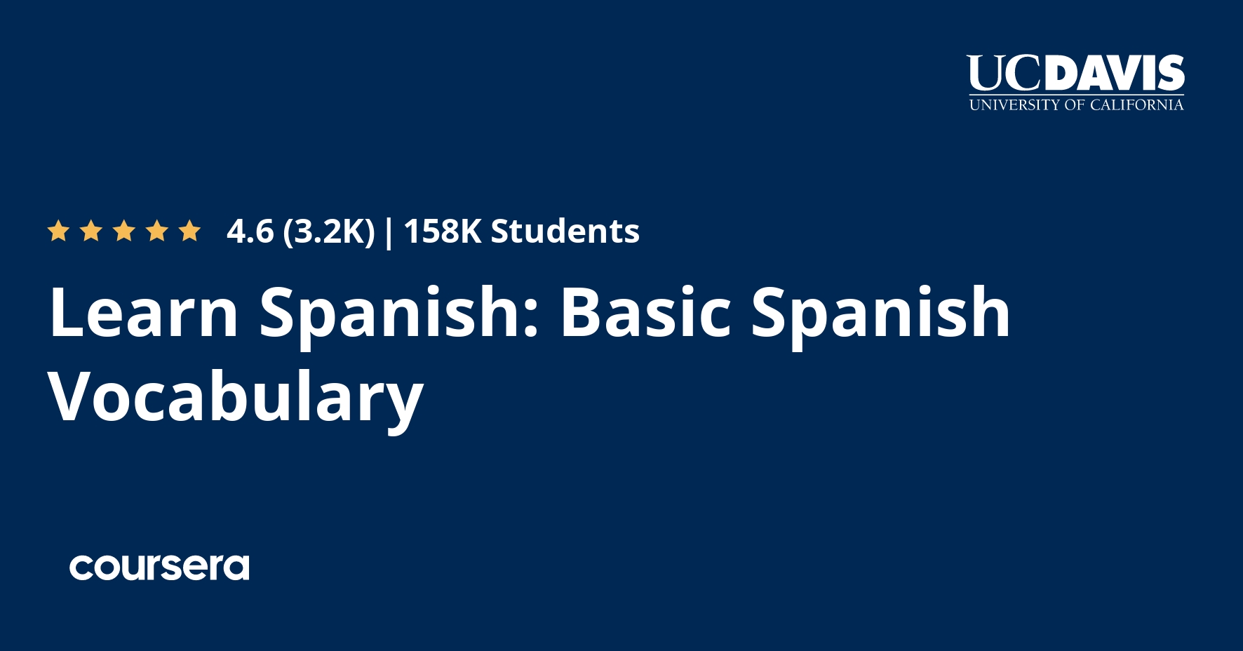 Offered by University of California, Davis. Learn Spanish. Build a working vocabulary of 1,500 of the most used words and phrases. Enroll for free.